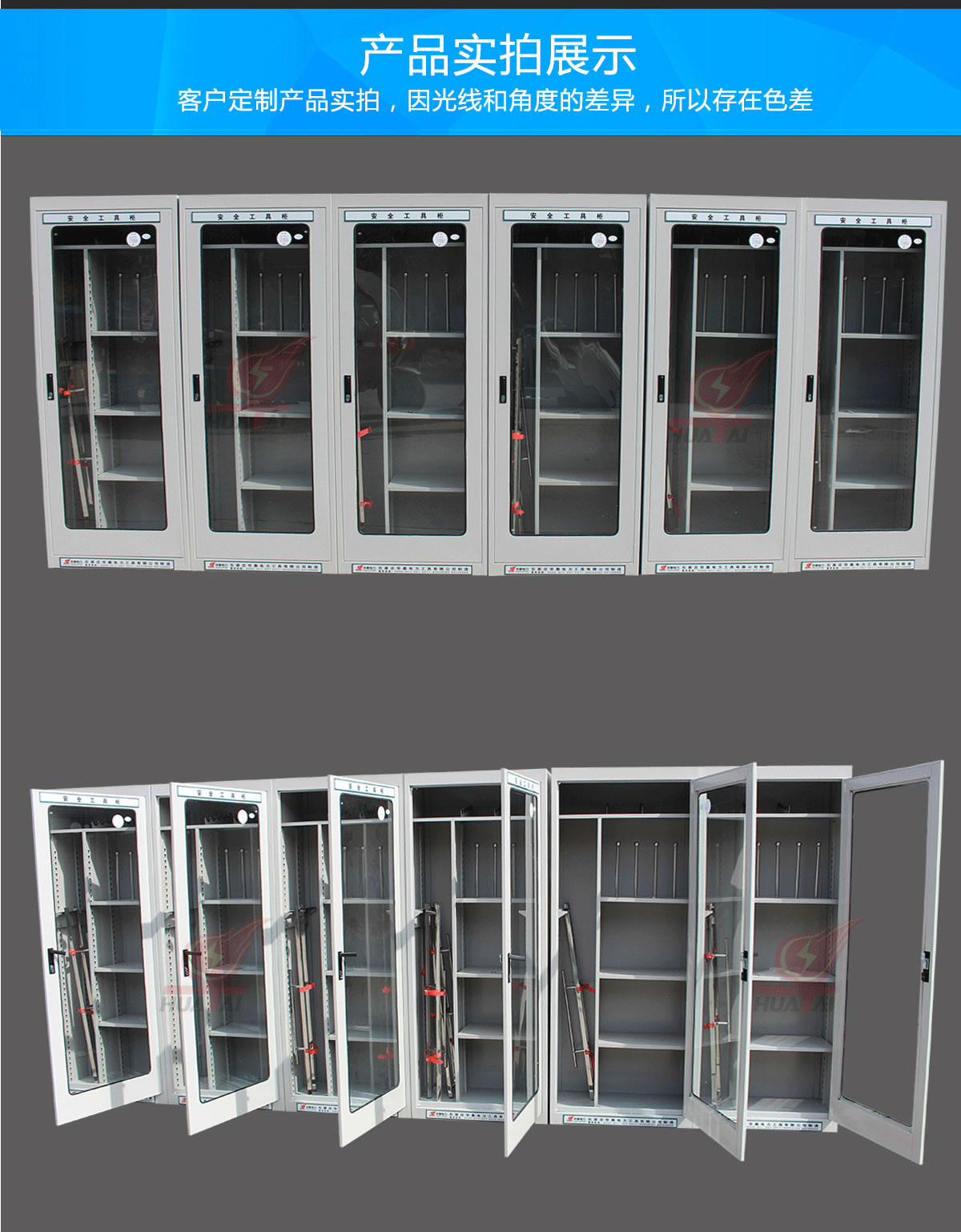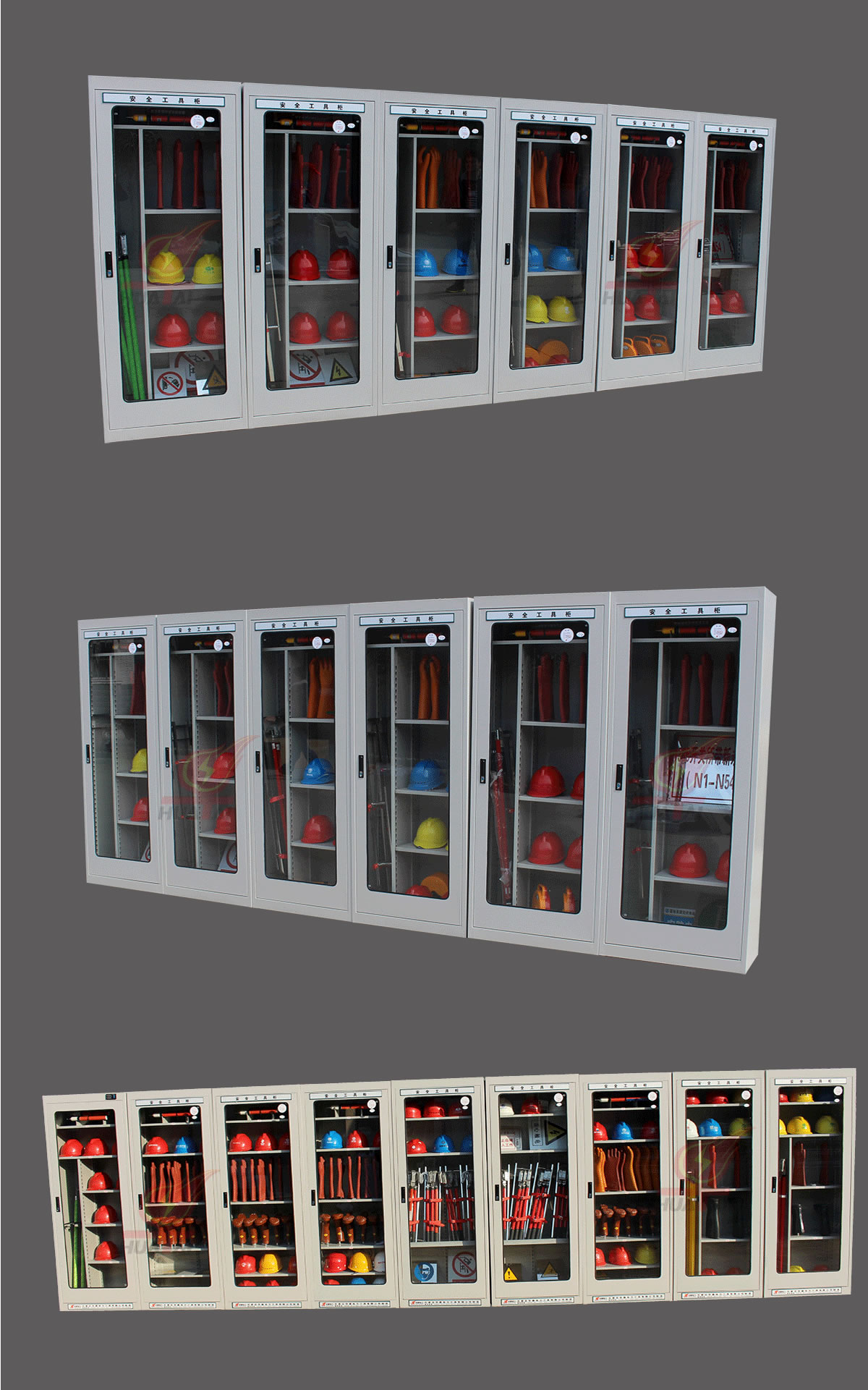 (2)柜體表面為靜電防腐噴塑工藝,顏色為駝灰色,柜門裝有通體透明鋼化玻璃,透過玻璃門可以看到分類有序的各種工器具,便于您的管理。