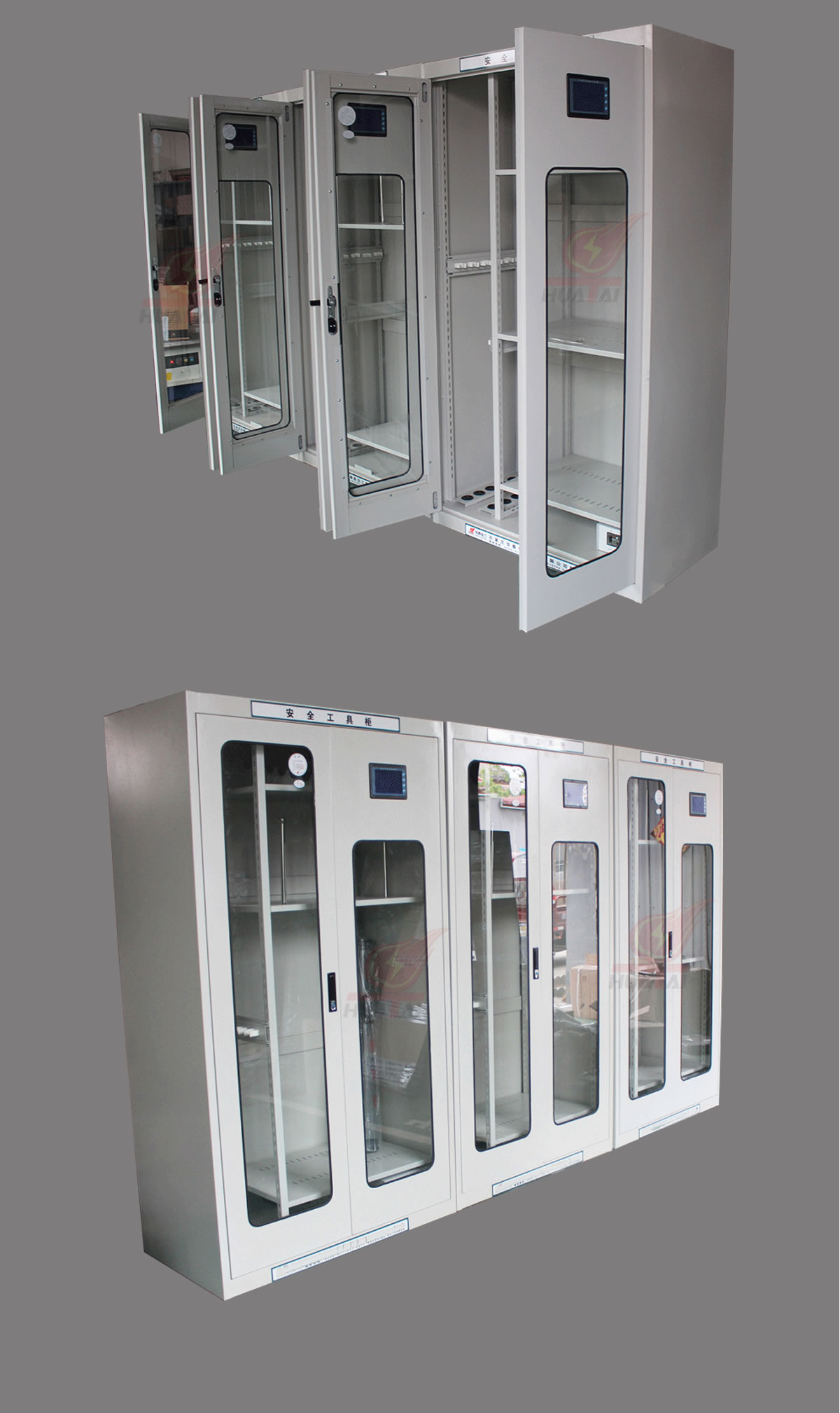 在國(guó)內(nèi)電力行業(yè)中,廣泛使用絕緣工具進(jìn)行帶電作業(yè)或操作,受潮后的絕緣性能下降,嚴(yán)重危及檢修人員的生命安全,現(xiàn)有的措施是采用木質(zhì)或鐵質(zhì)的柜體或絕緣工具庫(kù)房保管。木質(zhì)、鐵質(zhì)工具柜都不具備長(zhǎng)期恒定的防潮作用,極易受潮,難以適應(yīng)絕緣工具的存放要求。絕緣工具庫(kù)房是將絕緣工具存放在一個(gè)獨(dú)立的庫(kù)房?jī)?nèi),通過(guò)加溫去濕,使其干燥。使用時(shí)再?gòu)膸?kù)房提取,這樣不僅投資太大,能耗高、煩躁過(guò)程緩慢,特別是絕緣工具太少的單位,沒(méi)有必要建立絕緣工具庫(kù)房,所以研發(fā)了一種電力安全工具柜。本公司依靠多年來(lái)的生產(chǎn)安全工器具的技術(shù)經(jīng)驗(yàn),開(kāi)發(fā)除了自動(dòng)調(diào)控的智能安全工具柜。發(fā)揮專(zhuān)業(yè)優(yōu)勢(shì),安全工器具與安全工具合理結(jié)合,配套供應(yīng),根據(jù)安全工器具品種、規(guī)格、數(shù)量、優(yōu)化分類(lèi),個(gè)性化設(shè)計(jì),量身打造,有效保證了安全可靠性集防潮、防塵、防損方串套,整齊美觀于一體,深受廣大用戶好評(píng)。助您進(jìn)一步提升電力安全管理水平,充分體現(xiàn)我國(guó)供電企業(yè)風(fēng)范。