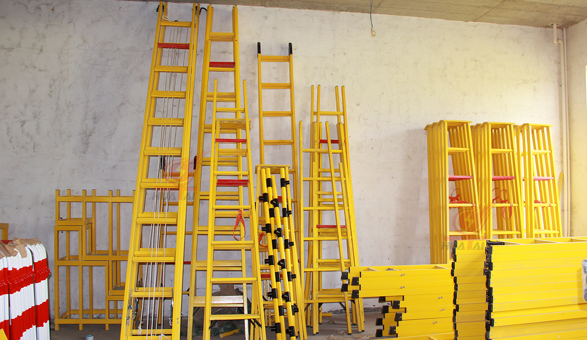 絕緣梯采不飽和樹脂和玻璃纖維聚合拉擠制造工藝,材質(zhì)選用環(huán)氧樹脂結(jié)合銷棒技術(shù),軸類鋼制件表面有防護(hù)鍍層;絕緣層壓類材料制件加工表面用了絕緣漆進(jìn)行處理。