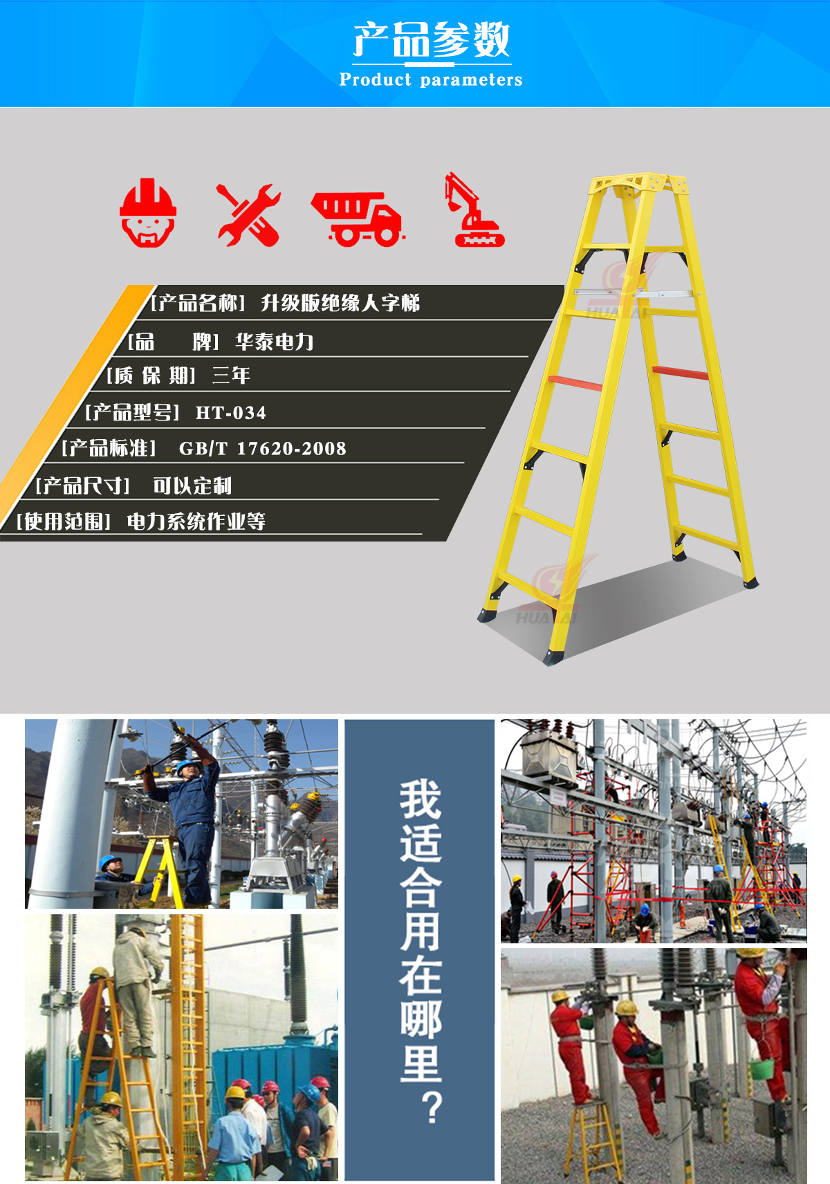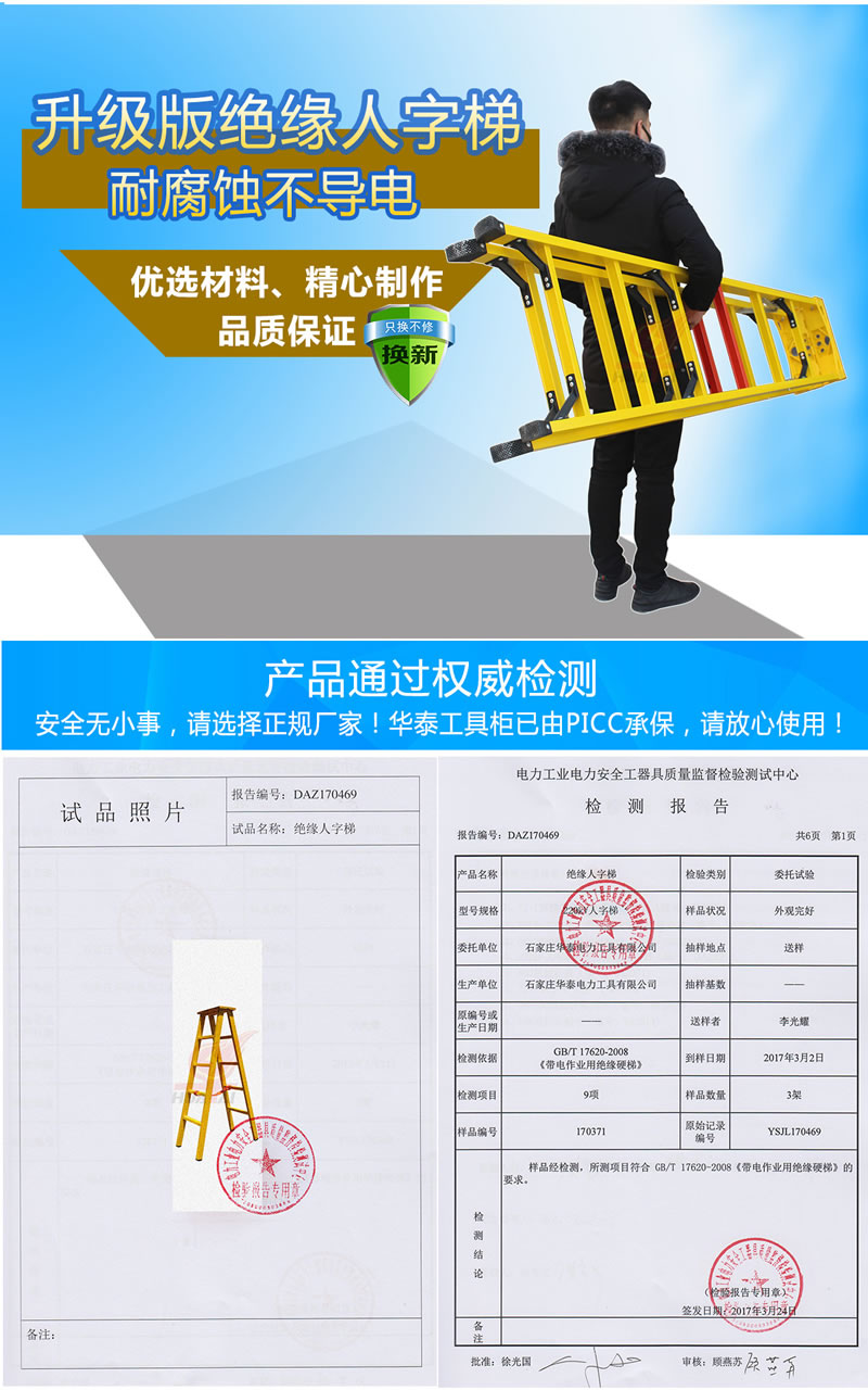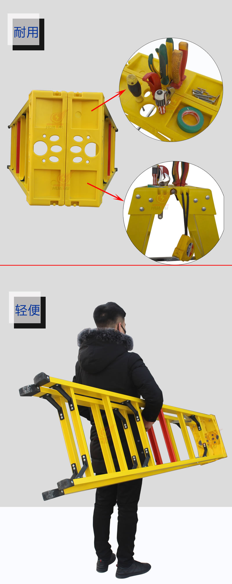 (1)升級版玻璃鋼絕緣人字梯不導(dǎo)電,外觀新穎,美觀大方