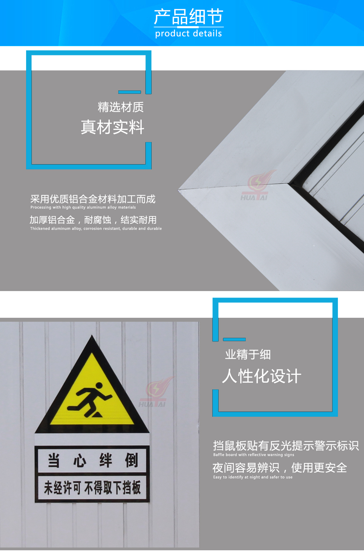 3.擋鼠板上部貼有反光條,夜間容易辨別,防止人員被絆倒。