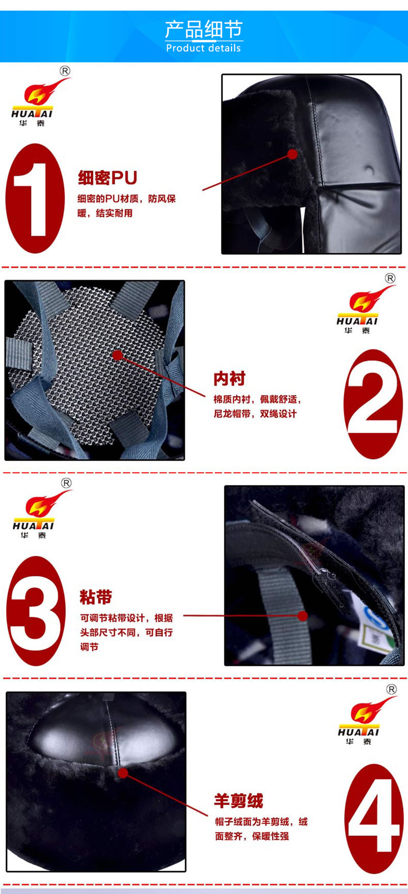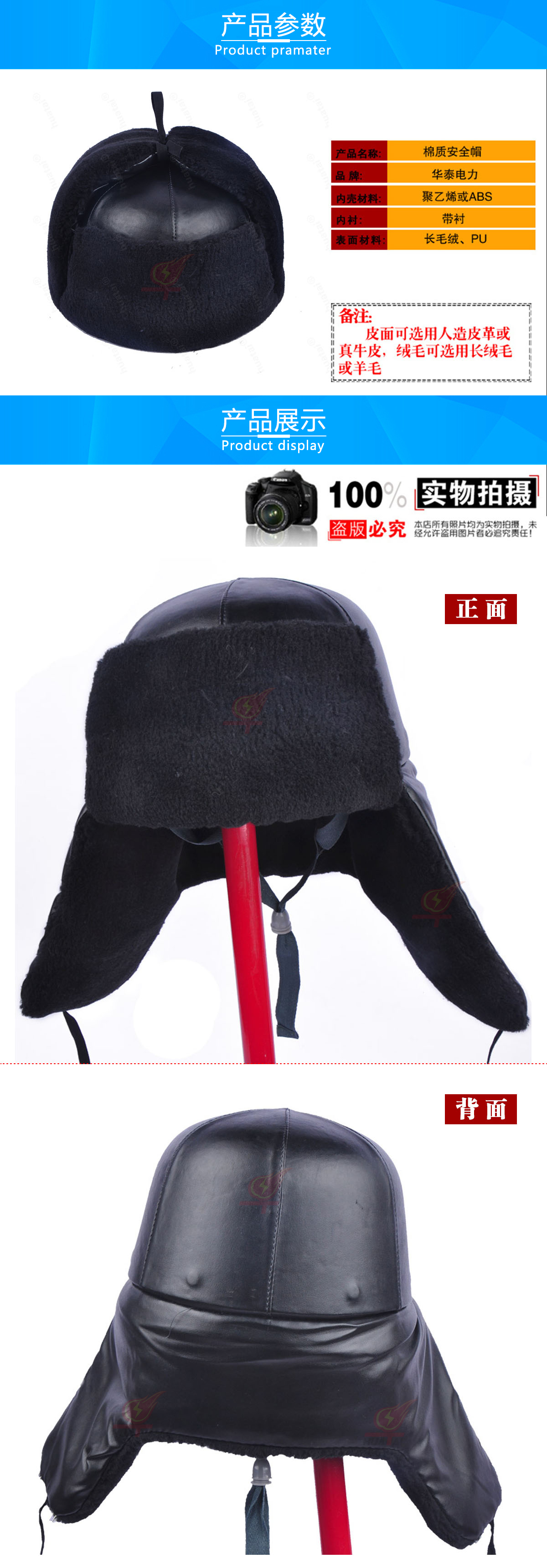 防寒安全帽又稱為棉安全帽、雙用安全帽,防寒安全帽是防止沖擊物傷害頭部的防護用品。是由皮或革帽面、內(nèi)殼、保溫層與內(nèi)襯組成。帽殼和帽襯之間留有一定空間,可緩沖、分散瞬時沖擊力,從而避免或減輕對頭部的直接傷害。沖擊吸性性能、耐穿刺性能、側(cè)向剛性、電絕緣性、阻燃性是對防寒安全帽的基本技術(shù)性能的要求。在極其寒冷的環(huán)境下施工佩戴,可擋風預寒、保溫,耐腐蝕、不易老化,具有良好的防震及耐穿透性能。 防寒安全帽:適用我國寒冷地區(qū)冬季野外和露天作業(yè)人員使用,如礦山開采、 地質(zhì)鉆探、 林業(yè)采伐、 建筑施工和港口裝卸搬運等作用。