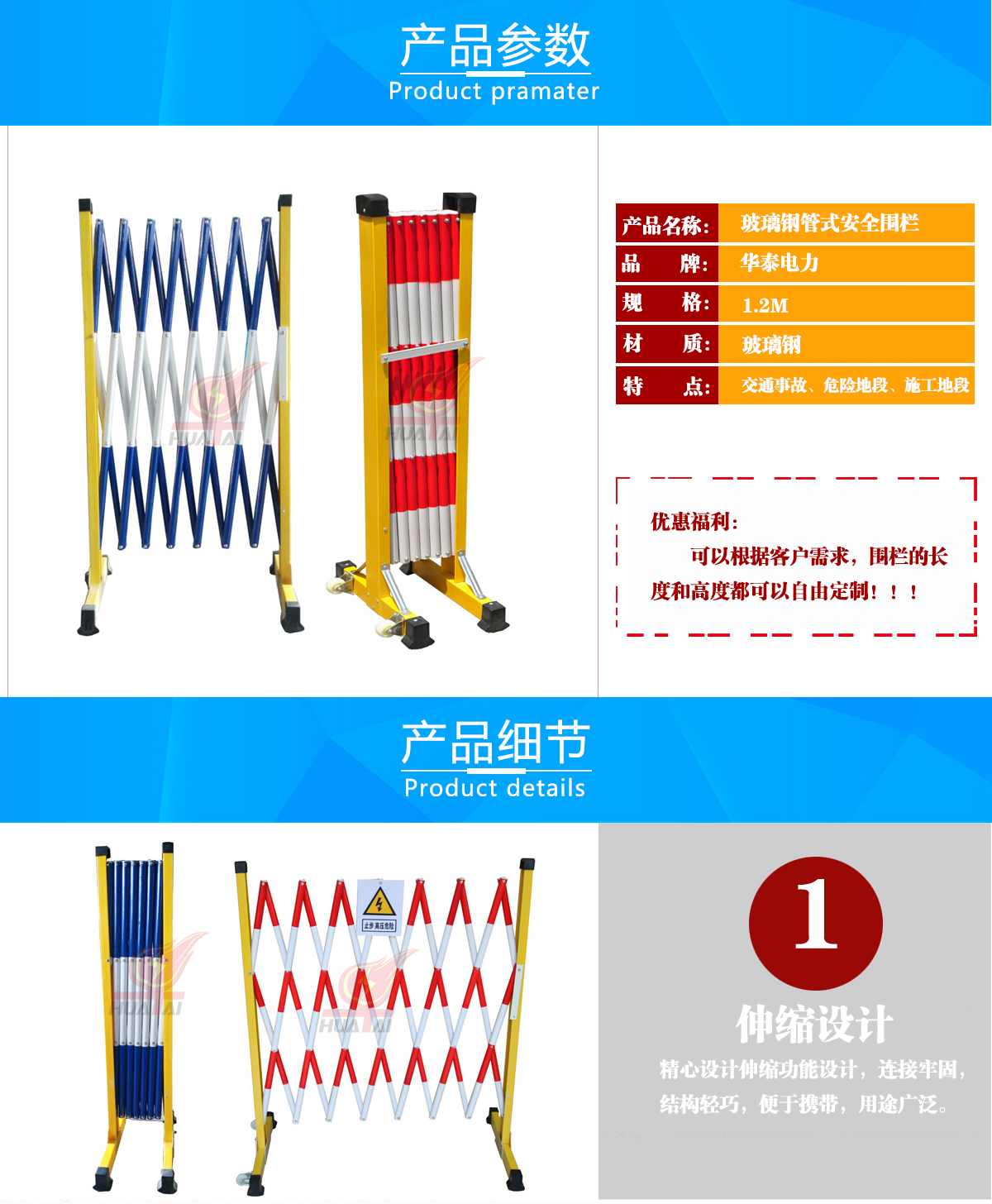 安全圍欄高度為1.2米,伸開長度為2.5米。以其新穎獨(dú)特的設(shè)計(jì),打破了傳統(tǒng)圍欄的陳舊形式,賦予了圍欄先進(jìn),實(shí)用,多姿的