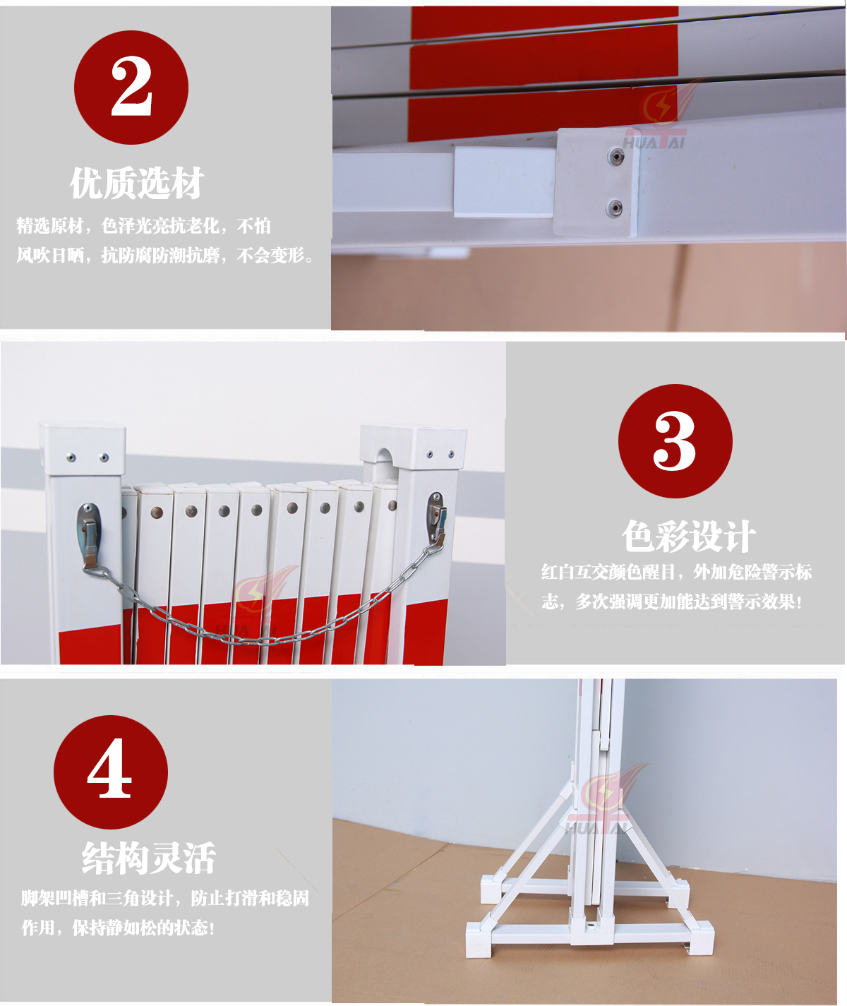 裝設(shè)安全圍欄是保證現(xiàn)場(chǎng)工作人員安全技術(shù)措施之一,主要用于發(fā)電廠,變電站的電氣設(shè)備檢修、電氣實(shí)驗(yàn)、配電檢修等。 整套圍欄由玻璃鋼圍欄片、支撐桿和支座組成。