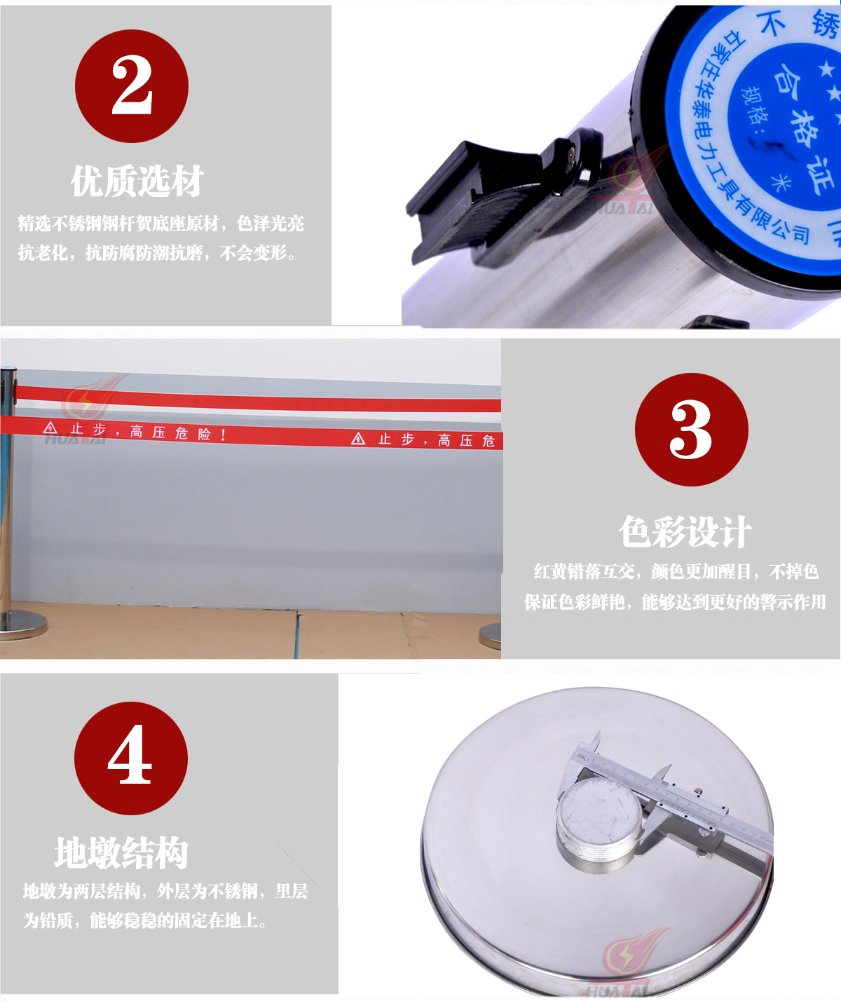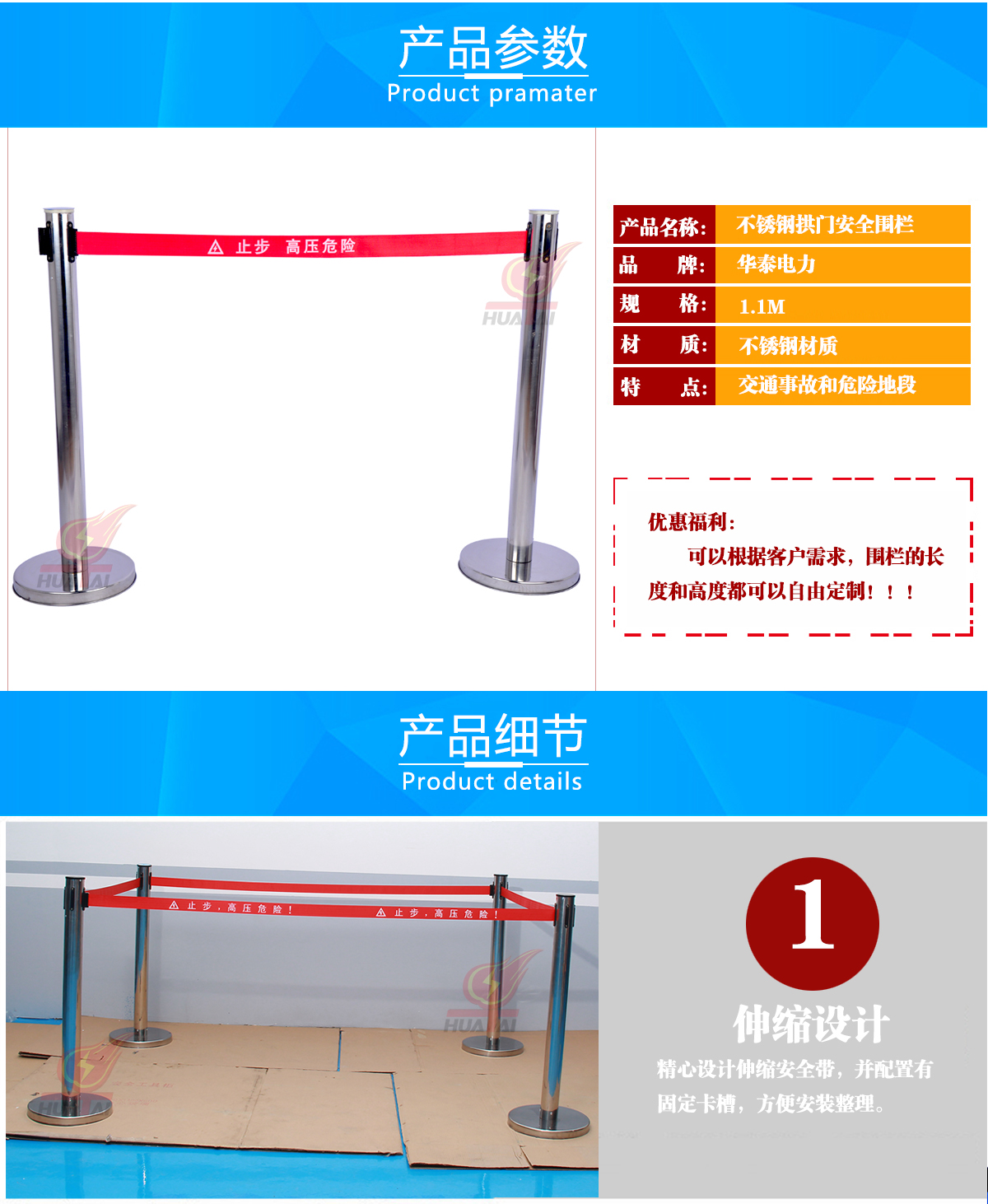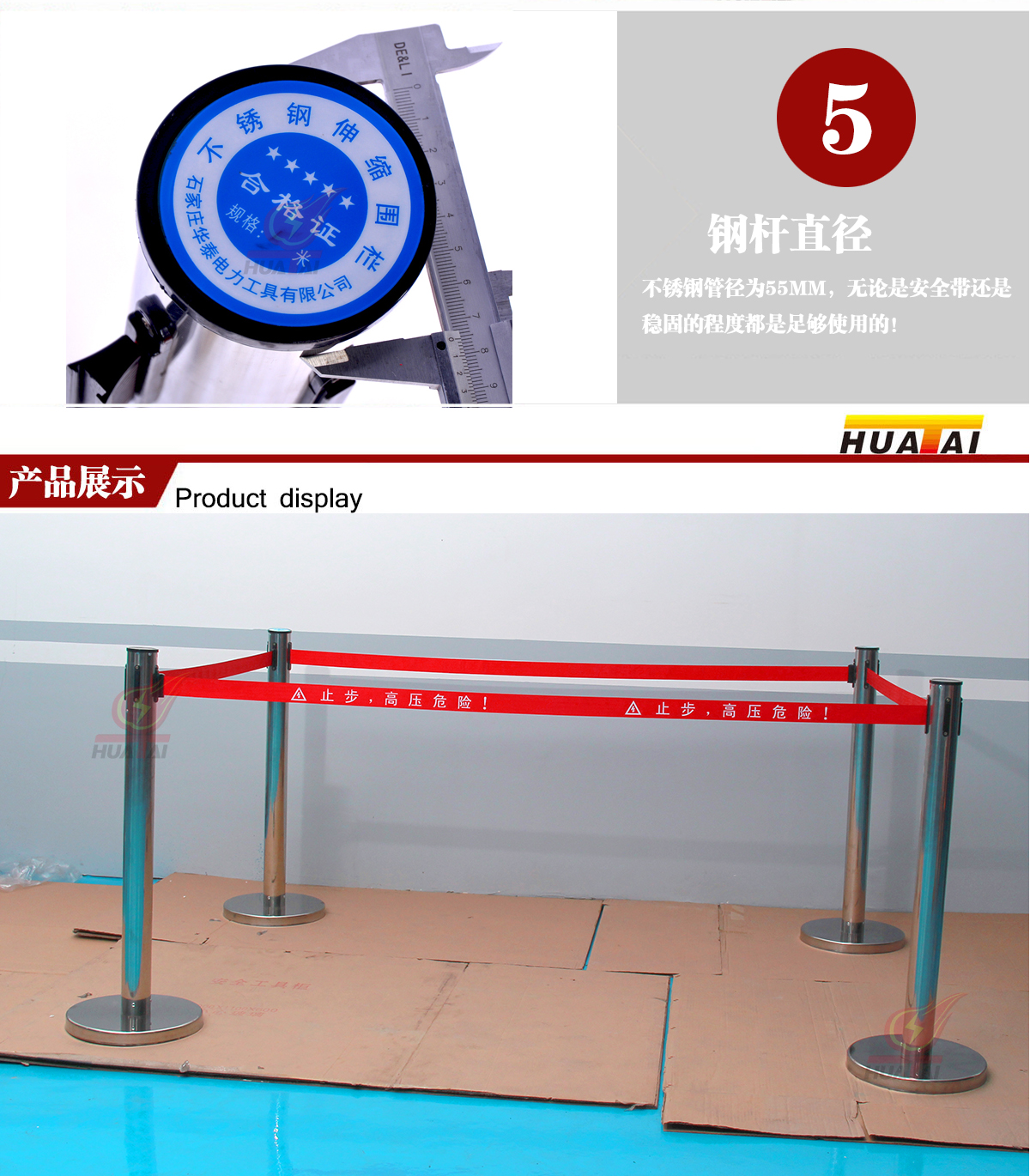 品設(shè)施等。伸縮一米線隔離帶警示圍欄是一種新型安全警示、維護(hù)產(chǎn)品。它是在原來單層伸縮一米線隔離帶警示圍欄的基礎(chǔ)上的改進(jìn)和創(chuàng)新,是新一代的不銹鋼安全圍欄產(chǎn)品,。是電力 部門推薦產(chǎn)品。具有抗拉性好、不怕磨損、不怕雨淋、抗老化等特點(diǎn),可隨意伸縮、隨意間 距和分隔形狀,無限連接等功能。此產(chǎn)品非常適合配電檢修、電氣檢修、改建施工、交通、 公司設(shè)置警戒線及其它止步場所。