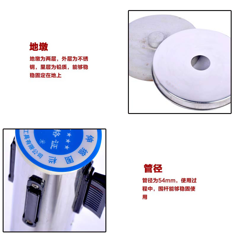 裝設(shè)單層伸縮一米線隔離帶警示圍欄是保證現(xiàn)場工作人員安全技術(shù)措施之一, 伸縮一米線隔離帶警示圍欄可用于熱鬧場所疏導(dǎo)及分流; 發(fā)電廠、 變電站的電氣設(shè)備檢修、電氣實(shí)驗(yàn)、配電檢修; 酒店、賓館、會所、寫字樓大廳、各營業(yè)大廳、車站、機(jī)場及各公共娛樂場所疏導(dǎo)及分流,必備的大堂用