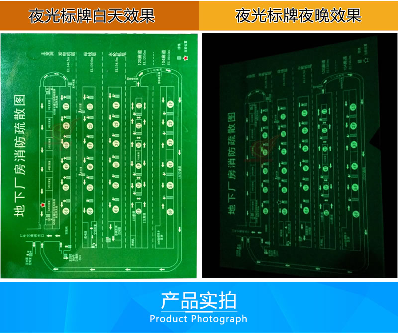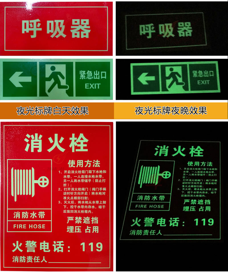 3, PVC夜光標(biāo)識(shí)標(biāo)牌吸光速度快,發(fā)光延續(xù)時(shí)間長(zhǎng),通常只需5-10分鐘可持續(xù)在暗處發(fā)光10小時(shí)以上,在消防突發(fā)事故中 起到信息指示逃生作用