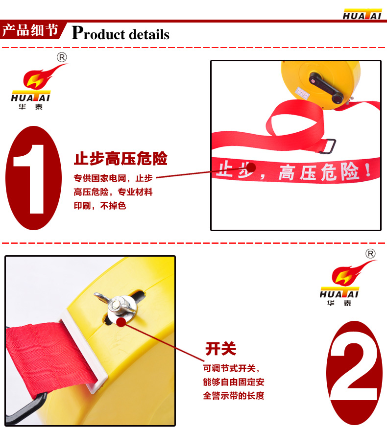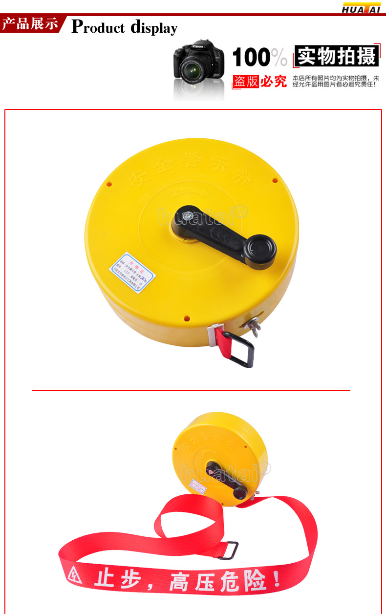 本產(chǎn)品主要材質(zhì)為纖維織物,經(jīng)印刷切割制作而成,色澤鮮艷。采用盒式包裝,可快速方便地將盒內(nèi)警戒帶拉出及收回,能重復(fù)使用。廣泛用于突發(fā)性事件或施工區(qū)域及危險(xiǎn)地段的現(xiàn)場(chǎng)警戒、隔離。