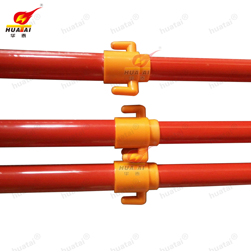 圍欄管使用為三角管外壁,提高材質(zhì)強(qiáng)度,不易變形。 關(guān)節(jié)處帶卡扣,按鍵式,不會(huì)自動(dòng)滑落。 此為新型伸縮絕緣地樁,比以往老款做工