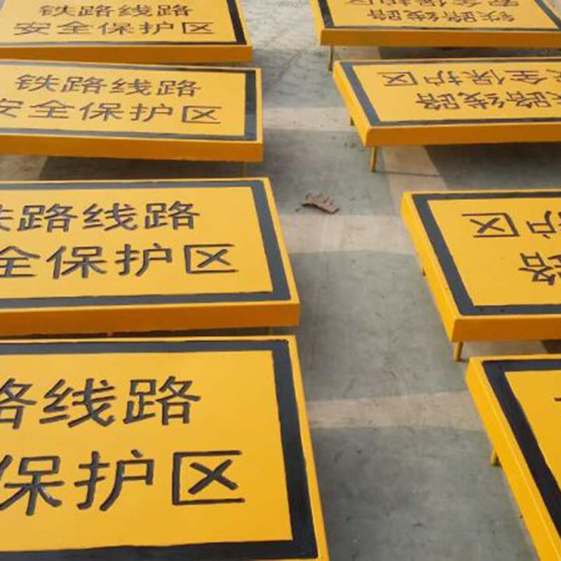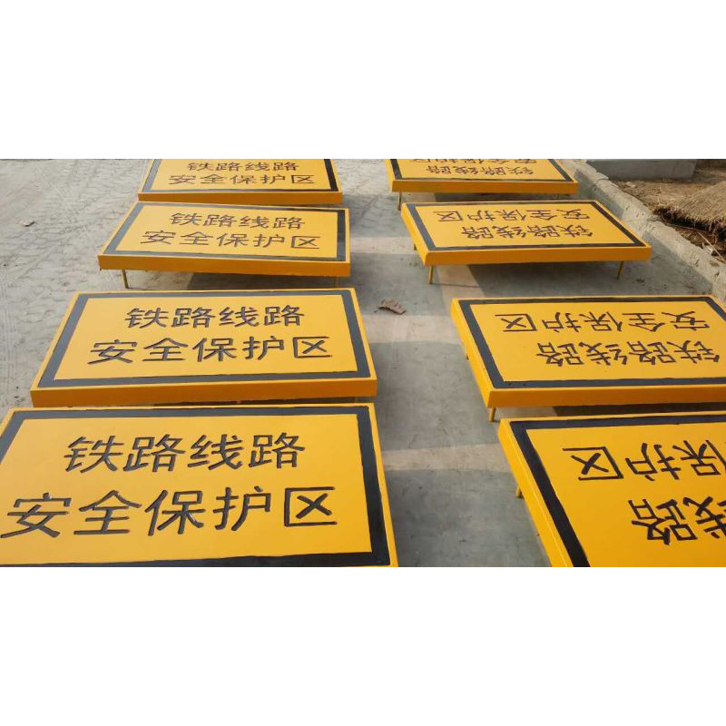 鐵路保護區(qū)AB材料:灰號為C40的水泥,樁體內部由ф6.0mm螺紋鋼三橫四豎捆綁結構,采用鋼板模具澆筑而成,樁體表面涂有戶外專用白色防水涂料,字體噴紅色涂料。
